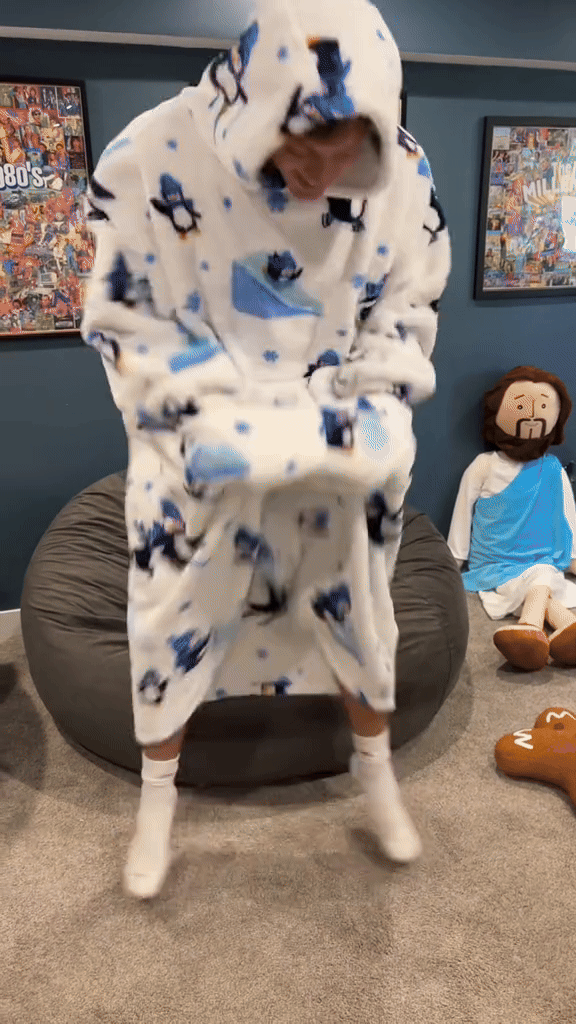 Cozy comfort you can actually move in. Our new Wearable Blanket with fun designs keeps you warm while your hands and feet stay free—so you can text, snack, game, and glide around the house without having to do the "Shark Shuffle.”